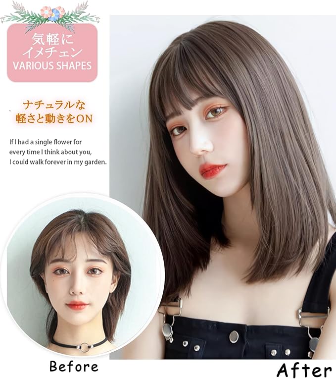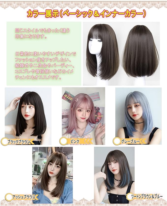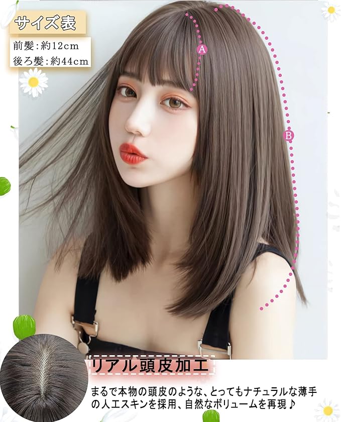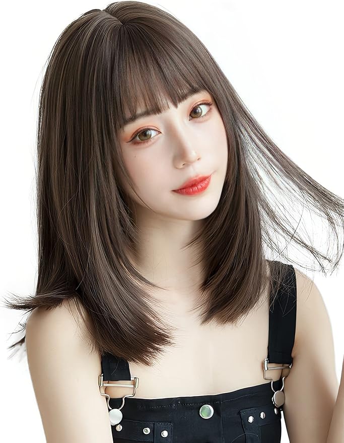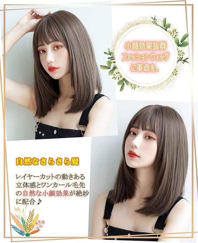 Limakara 人工毛 ウィッグ ミディアム ストレート自然 カツラ フルウィッグ セミロング レイヤー レディース かつら 女性 小顔 可愛い ぱっつん ネット付き アッシュブラウン | oioioichan