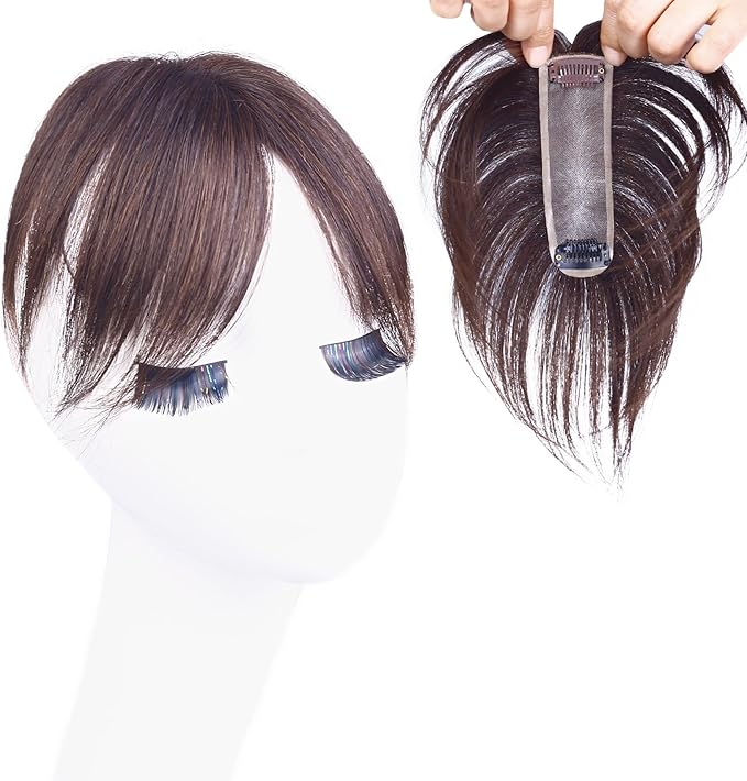 HIYE 部分ウィッグ 分け目専用 100% 縦長型 ミニウィッグ 女性用 超軽量 頭頂部 ショート ヘアピース 自然 ポイントウィッグ リアルスキン 通気性 白髪隠し 簡単装着 ナチュラル トップカバー 二つの前髪 横4cm縦13m (栗色, 15cm, センター分け) | oioioichan