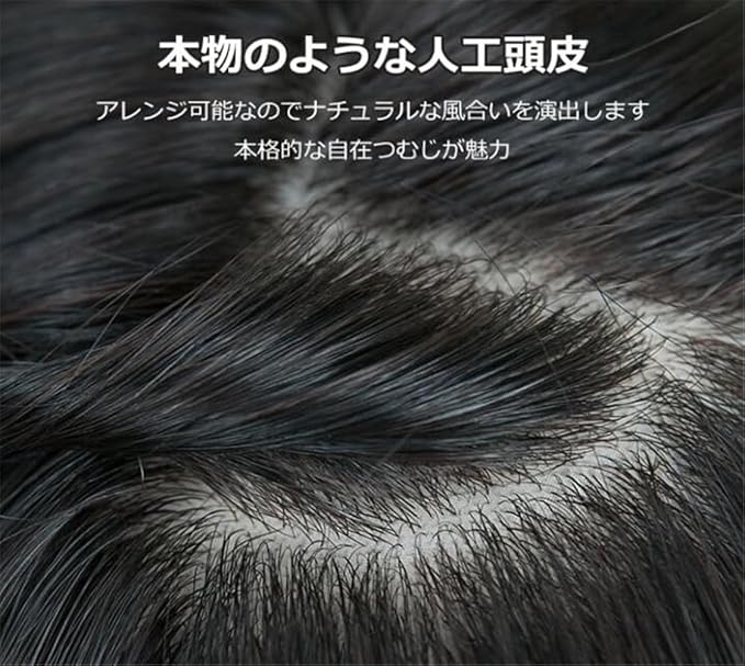 【超リアルな人工皮膚&通気性】極薄の肌色人工皮膚を使用しており、近くで見てもウィッグであることがわかりにくいです。頭頂部にぴったりフィットするため、見た目も非常にリアルです。