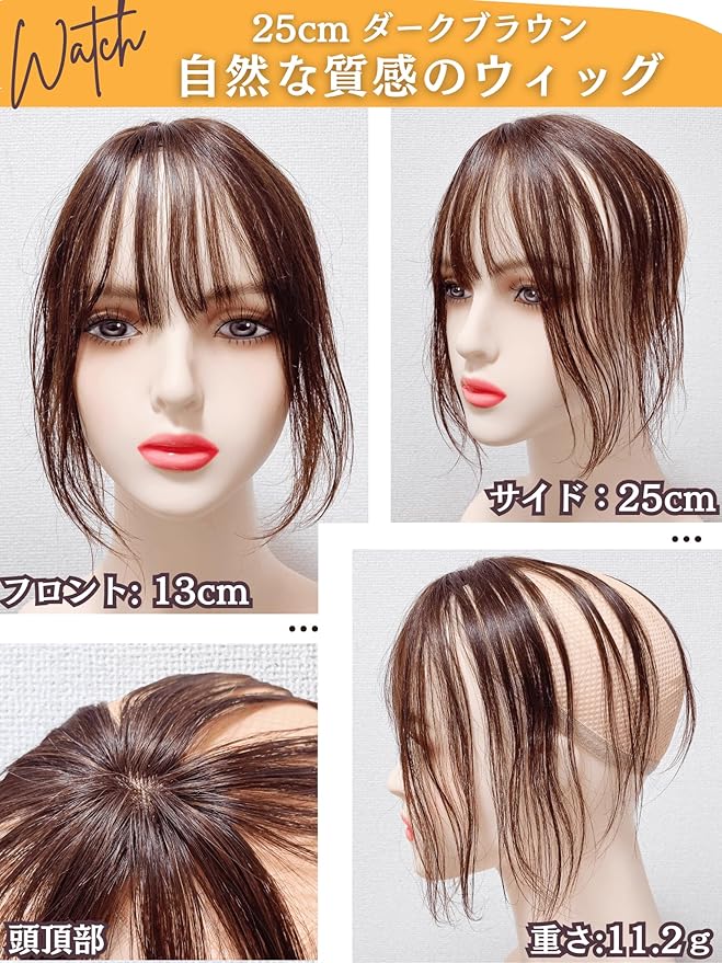 Luce brillare 部分ウィッグ 前髪ウィッグ 100% ヘアピース トップピース トップウィッグ トップカバー 白髪カバー 自然 部分カツラ 用 浮かない 部分 女性 レディース つむじ 頭頂部 前髪 白髪隠し ルスブリラーレ (ダークブラウン, 100%) | oioioichan