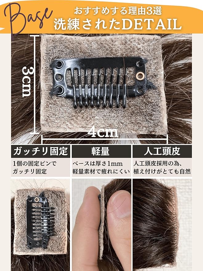 ✅【通気性UP】⑦ベース: 強力固定ピンは1つで、より自然なつけ心地を再現致しました。無駄なものをとことん排除し、適切なサイズの強力固定ピンを付けているため、快適、通気性、蒸し暑くない等の利点があります。