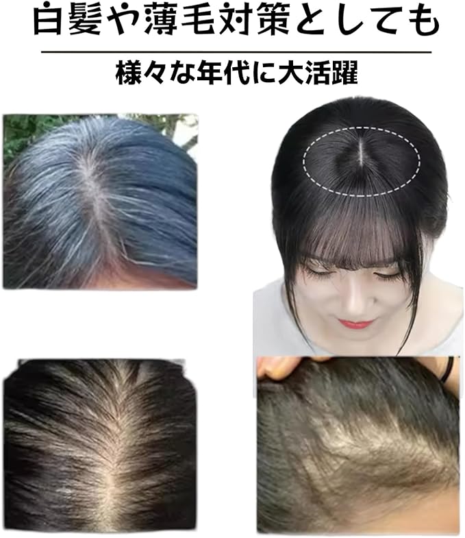 【自然な髪!自信を取り戻す100%人の部分ウィッグ】 色合いは光の角度によって微妙なブラウン加減のあるナチュラルブラック色なっています。この部分ウィッグは100%のを使用しており、髪の量を増やすことで自然な見た目と仕上がりを実現します。髪の量を増やしながら、白髪や気になる部分を瞬時にカバーでき、幅広い年齢層におすすめ。外出時も安心して自信を持ってお使いいただけます。白髪や髪のボリュームが気になる方、ヘアスタイルに自然な変化を加えたい方、特別な日や日常で自信を持ちたい方などにおすすめ!