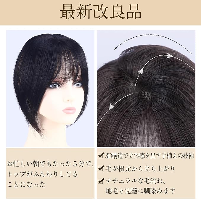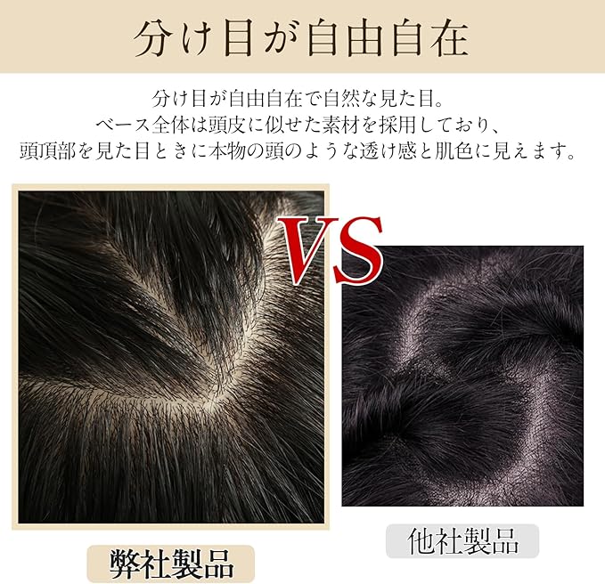 通気性が良く、快適に着用できる:通常のフルウィッグと比べて、私たちのトップピースはより通気性があり、自分の髪にぴったり合います。ベースは通気性の良いメッシュネットを使用し、湿度の高い季節でも蒸れにくいです。