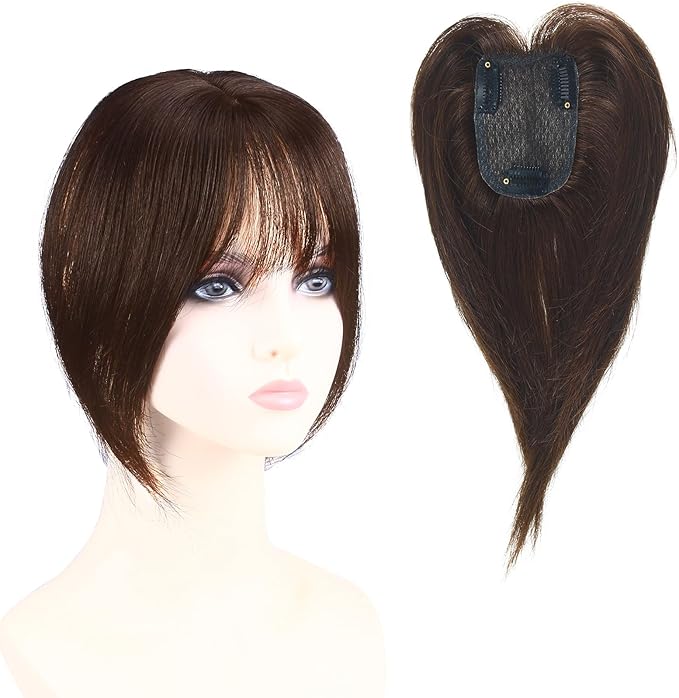 HIYE 部分ウィッグ 100% 手植え 自然 人工皮膚付け 白髪隠れ 3D 前髪ウィッグ 通気性 軽量 ショート 女性用 ファッション トップカバー 装着簡単 ヘアピース ぱっつんバング ((7*9CM)栗色) | oioioichan