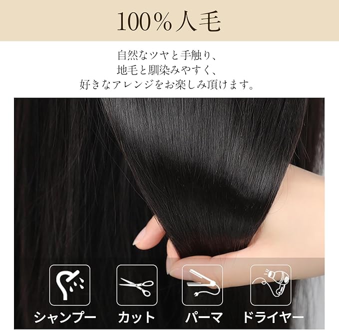全素材:HIYEのウィッグは100%高品質ので作られており、一本一本の髪の毛は厳選され、質が非常に良く、手入れも簡単で、自分の髪のように自由にスタイリングできます。この高級な素材により、ウィッグはより自然に見え、手触りが柔らかく、本物の髪に近いです。留め具はしっかりと固定でき、安心してご使用いただけます。