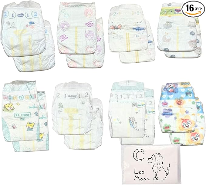 【新生児用おむつお試しセット】紙おむつ 赤ちゃん テープタイプ 新生児サイズ 8種類 各2枚 計16枚 パンパース メリーズ ムーニー グーン ネピア|LeoMoonオリジナルティッシュ付き, ホワイト | oioioichan