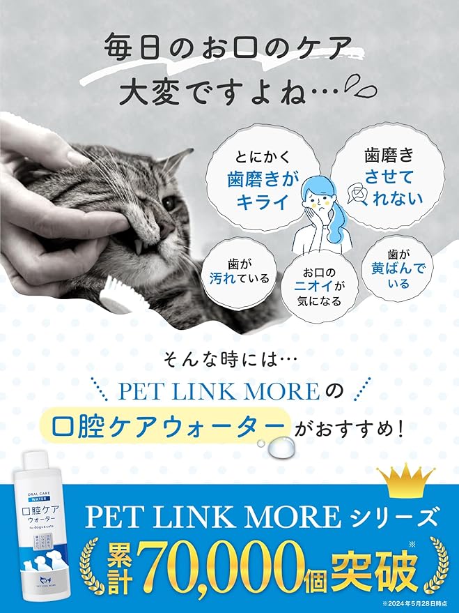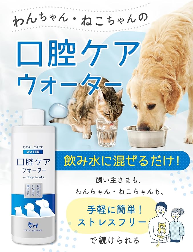 ✅犬猫専用に開発したPETLINKMOREの口腔ケアウォーターで口腔内の臭いや汚れをを清潔にします