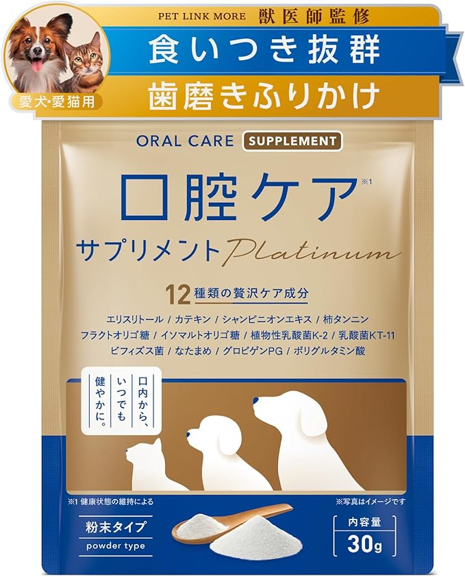 ✅【本格口腔ケア】PETLINKMORE 口腔ケアplatinumは8大口腔ケアサポート成分配合の本格派口腔ケア用品。それなのにいつものごはんにさっとかけるだけ。簡単に口腔ケアできるふりかけタイプのデンタルケアです