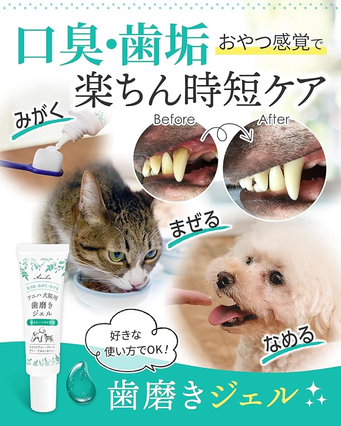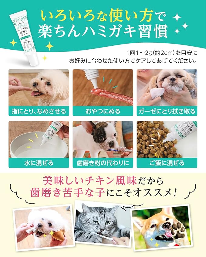 ✅ 【獣医師監修 食べられる歯磨きジェル】 歯ブラシが苦手でも「なめる・みがく・まぜる」とお好みの方法で口腔ケアができる、チキン風味の“獣医師監修”犬猫用歯磨きジェル。※食べられます