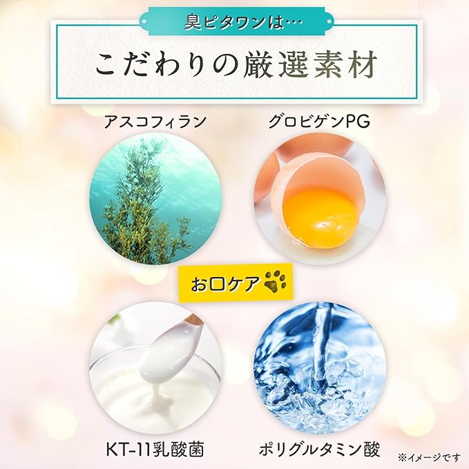 グロビゲンPGやアスコフィランで口腔内の健康維持をサポート 犬の口臭や歯垢・歯石の原因にアプローチする成分を配合し、歯磨き不要でも続けられる新しいデンタルケア。