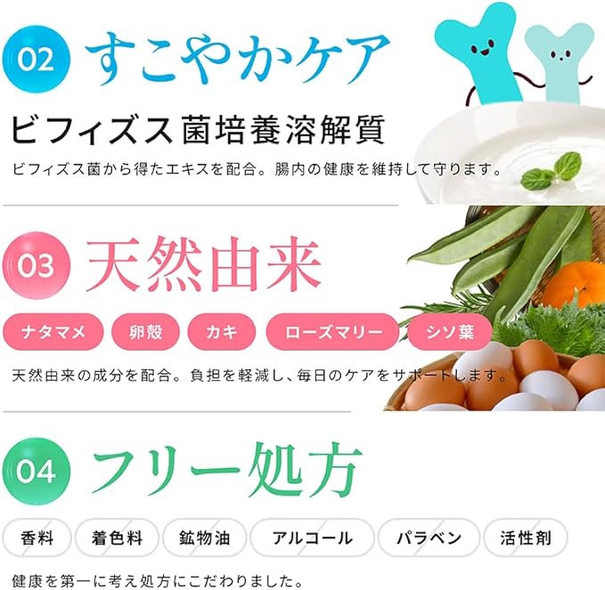 【無香料・無着色・無添加】使いやすさだけではなく、人間と同じ基準を設けた、厳しい品質管理と製造。 【卵殻アパタイト】卵の殻から生まれた汚れケア成分。再石灰化を促進。汚れを吸着除去します。