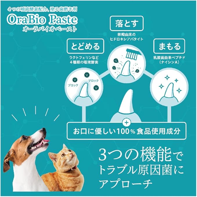 唾液に含まれる4つの唾液酵素(ラクトフェリン・ラクトパーオキシターゼ・リゾチーム等)を配合。口内に広げて健やかな口内環境に。
