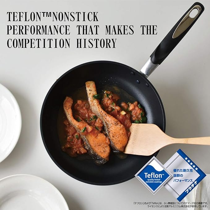 素材・材質:本体/アルミニウム合金、内面/テフロン(TM)プラチナ加工、外面/ミラー仕上げ・セラミック耐熱塗装 (底)、底面/鉄・アルミニウム溶射 はり底、取っ手/フェノール樹脂