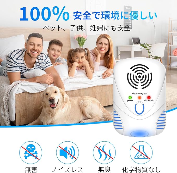 【静音無臭無毒】本製品は超音波によってネズミを撃退するため、化学駆除剤を一切使用せず、環境に優しいです。刺激臭もなく、家族の日常生活にも悪影響を与えないため、子供や妊婦のいる家庭でも安心して使用できます。また、超音波ネズミ撃退器が発する音は人間の可聴域外であるため、家族に迷惑をかけることなく、効果的にネズミ撃退の目的を達成することができます。