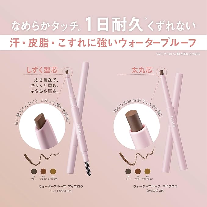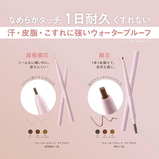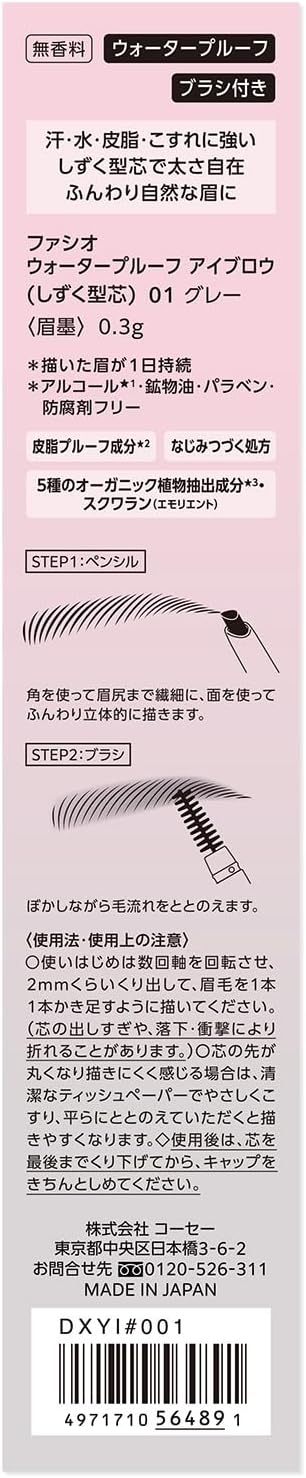 汗・皮脂・水・こすれに強い、ウォータープルーフタイプのペンシルアイブロウです。美しく発色し、パウダリーな仕上がり。ふんわり自然な眉が1日持続します。