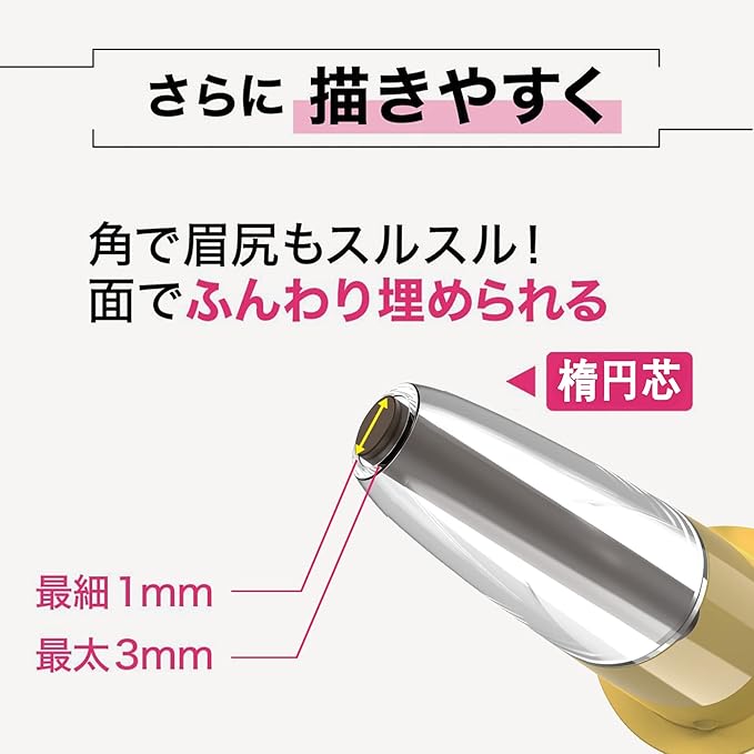 「新たにブラシ付き、1本で美人眉に」1-3mmの細芯で眉尻まで描きやすい、ブラシ付き眉を整えたり、ぼかすのにピッタリなブラシ付き。柔らかい毛質を採用したブラシ、 ナチュラルふんわり眉に仕上がります。