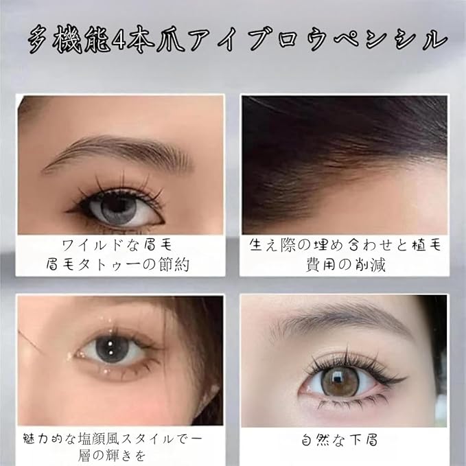 【多用途なアイブロウペンシル】: 眉の形を定義し、自然な野生眉を描くための細かいラインも実現。一つのペンシルで多機能なメイクが可能で、髪の生え際やまつげのラインを埋めて、全体の印象を完璧に仕上げます。