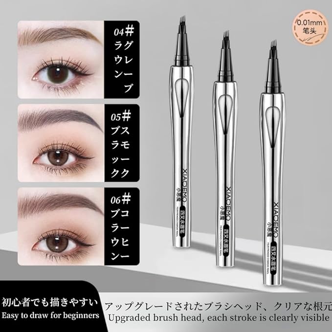 【高品質で使いやすいシルバーチューブデザイン】: 四叉眉ペンには高級感のあるシルバーチューブが採用されており、持ちやすく、使いやすいデザインになっています。プロフェッショナルな仕上がりを手軽に実現できます。
