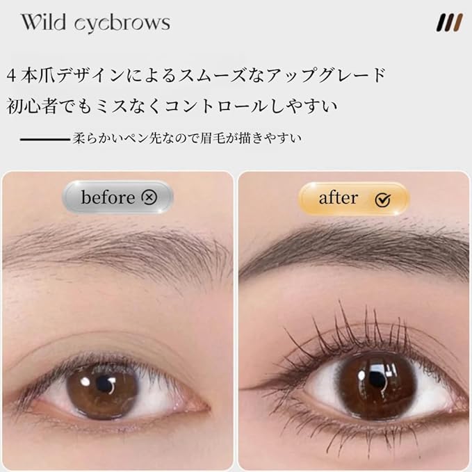 【プロの仕上がりを実現する二つのデザイン】: 二叉と四叉のデザインにより、眉を自然で立体的に仕上げ、完璧な形を描くことができます。初心者でも簡単にプロのような仕上がりが可能です。