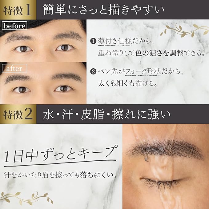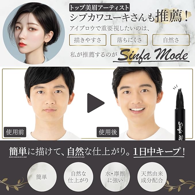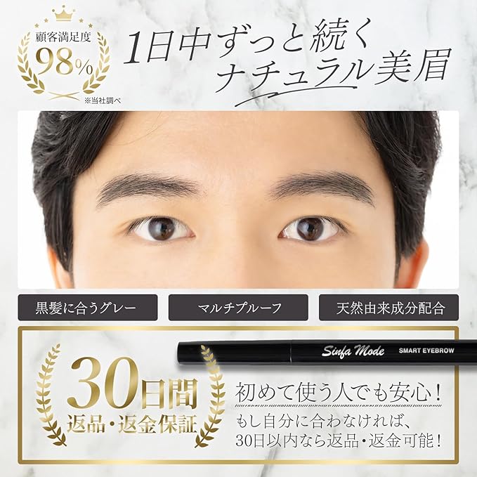 【専門家推薦!落ちない自然眉】アイブロウ メンズ 落ちない 簡単 自然 眉毛 失敗しにくい アイブロウペンシル リキッドアイブロウ ウォータープルーフ フォーク型 自然眉 まゆげ ペンシル リキッド 皮脂 汗 摩擦 グレー 日本製 SINFAMODE (シンファモード) | oioioichan