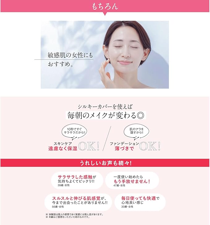 キチンキトサンをはじめとした微粒子成分が肌の凹凸にピタッと密着するため、厚塗り感がなくカバーした部分はまるで本当の自分の肌のように馴染み、一枚ベールをかけたようなすっぴん風シルク肌が体感できます。