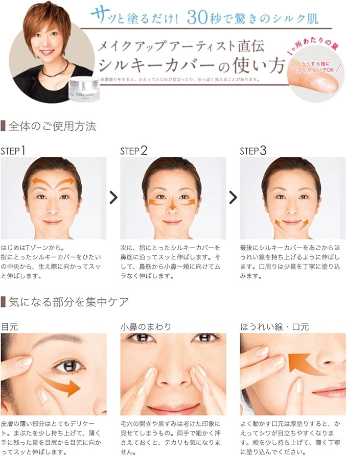 シルキーカバーオイルブロックは、肌トラブルや年齢により開いた毛穴や小じわに入り込み、肌をフラットに整える化粧下地です。