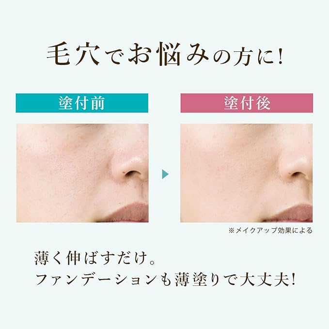 【毛穴隠し効果】肌トラブルや年齢によって開いた毛穴や肌の凹凸に密着し、“毛穴隠し”効果で瞬時にカバー。ファンデーションのノリを高め、“すっぴん風”の透明感ある肌へ導く毛穴プライマーです。