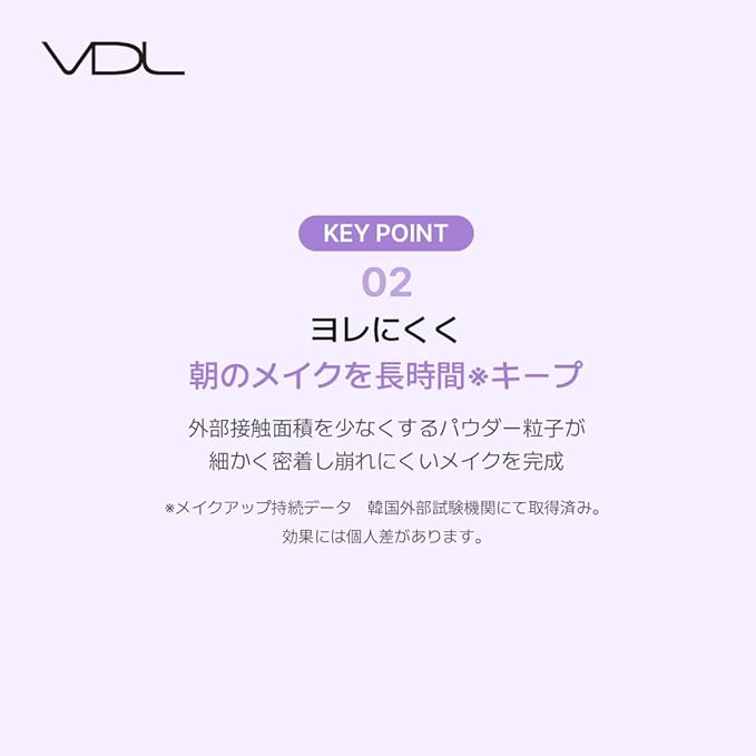 【ヨレにくく朝のメイクを長時間キープ* 】外部接触面積を少なくするパウダー粒子が細かく密着し崩れにくいメイクを完成 * ※1メイクアップ持続データ韓国外部試験機関取得済み。効果には個人差があります