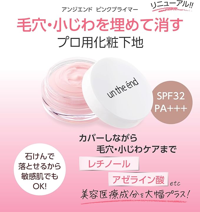 ✨毛穴や小じわ・シミを瞬時に消して、テカリやメイク崩れを1日中ふせぐ、毛穴隠しで大人気の化粧下地「アンジエンド ピンクプライマー」。アンジエンドはスタインズから生まれ変わったプロメイクブランドです。
