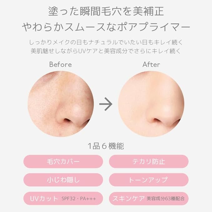 ■1品6機能 ・毛穴カバー ・テカリ防止 ・UVカット ・トーンアップ ・小じわ隠し ・スキンケア効果
