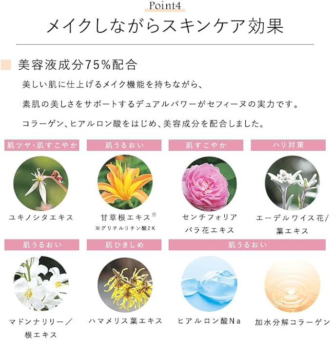商品の推奨用途 スキンケアと下地でお肌を整えた後、手に1プッシュ出し、少量を指につけて頬→おでこ→鼻→あごの順番で伸ばします。ブラシまたは手で内側から外側に伸ばします。 よりカバー力が欲しい方は、シルクウェットパウダーを重ねてください。 仕上げにフィニッシングパウダーを重ねると、崩れにくくなります。スキンケアと下地でお肌を整えた後、手に1プッシュ出し、少量… 表示を増やす