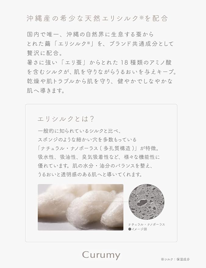 ノンケミカル処方、保湿成分[シルク、ヒアルロン酸Na、セラミドNP]配合