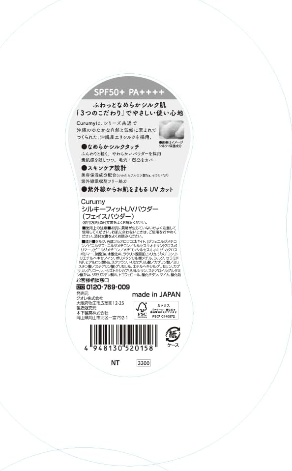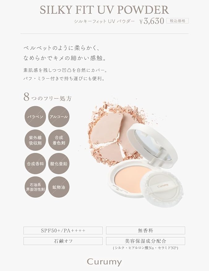 Curumy(クルミー) シルキーフィットUVパウダー 6g シルクタッチのUVパウダー キメ細かい感触 潤い 重さを感じないテクスチャー 毛穴・凸凹を自然にカバー SPF50+ PA++++ 無香料 ノンケミカル処方 クレンジング不要 石鹸で落ちます 保湿成分[シルク、ヒアルロン酸Na、セラミドNP] シリーズ共通で沖縄のゆたかな自然と気候に恵まれてつくられた、沖縄産エリシルクを採用 | oioioichan