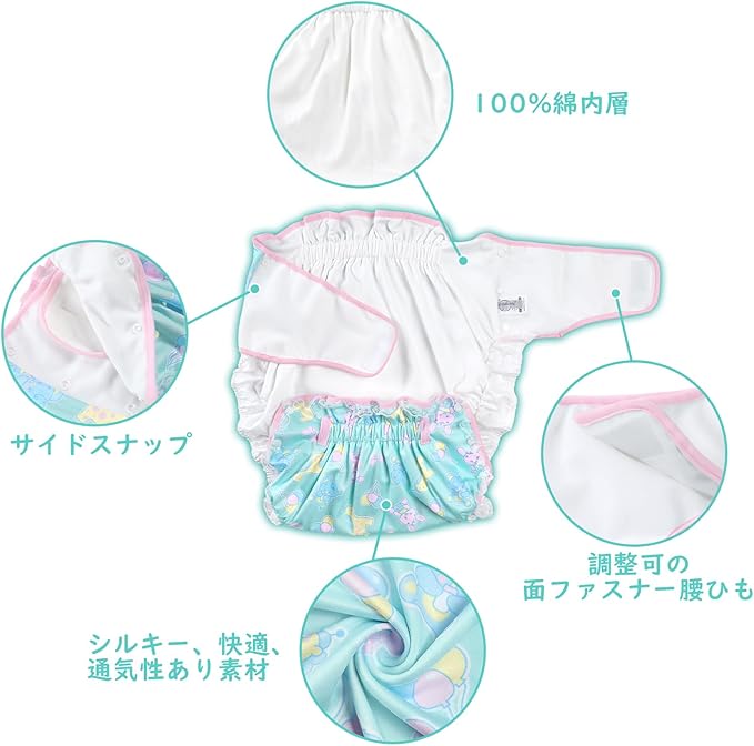 【再利用可能で環境にやさしい】この布おむつカバーは洗濯機で洗えるため、お手入れが簡単で繰り返し使えます。環境にも配慮したエコな選択肢。長持ちさせるためには低温洗い・自然乾燥がおすすめです。