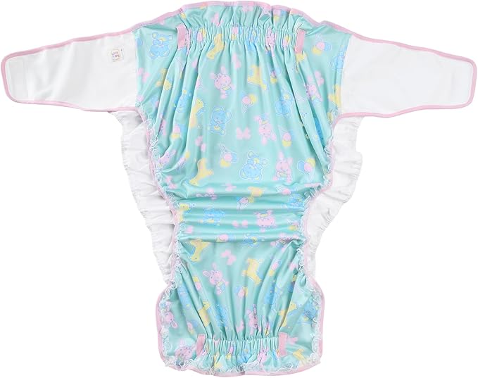 【調節可能な快適フィット】M〜XLサイズ対応の大人用布おむつカバー。サイドのスナップボタンと面ファスナーでサイズ調整が可能で、さまざまな体型にしっかりフィットします。ウエストや足回りはゴム仕様で、優しく体に沿いながらしっかりカバーします。