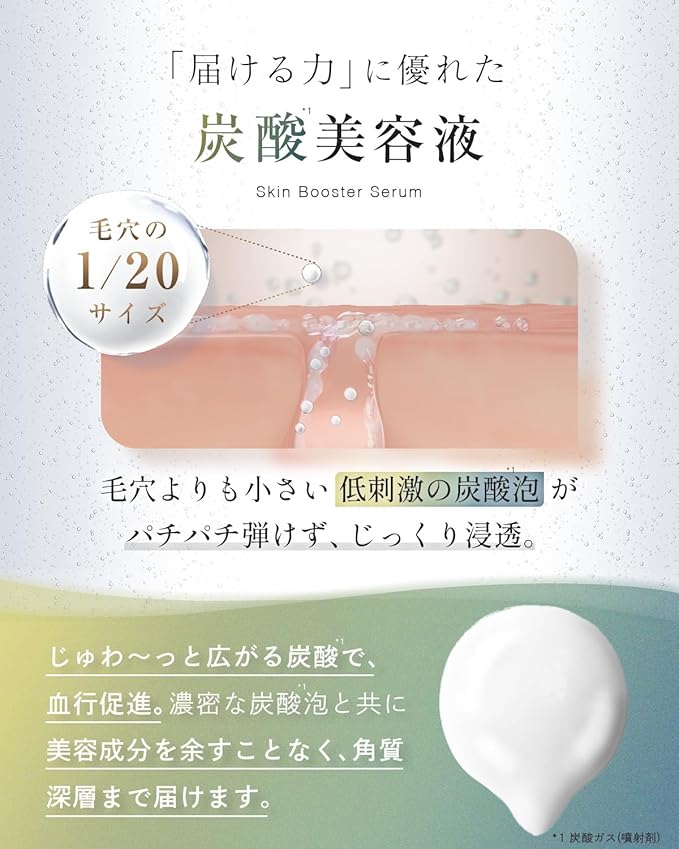 ✨【1度使うと戻れない!濃厚炭酸泡で弾力ツヤ肌】使うたびエステ後のような澄みわたる素肌へ。とろ~り生クリームのような泡で出てくる、新感覚の炭酸泡美容液。ハリ、ツヤ、乾燥によるくすみや毛穴など、1本で大人の肌悩みをオールケア