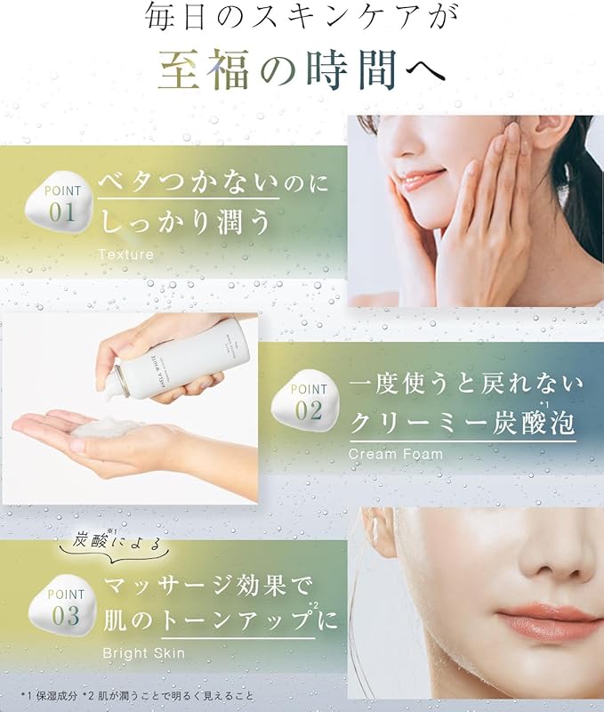✨【パチパチしないやさしい使用感】敏感な肌のために、パラベン、シリコン、合成着色料、鉱物油、サルフェートは無添加。安心の日本製。炭酸による効果も。
