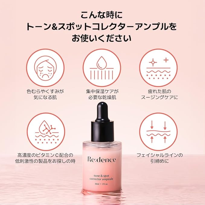 【トーン&スポットコレクターアンプル】リデンスの代表くすみ*アンプル。リデンス独自の美肌成分配合で昨日より明るい肌印象を体験してみてください。*乾燥による