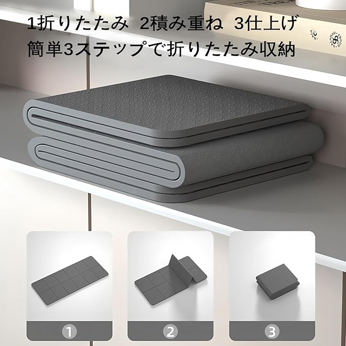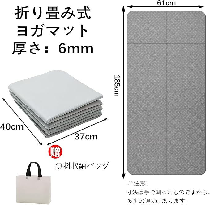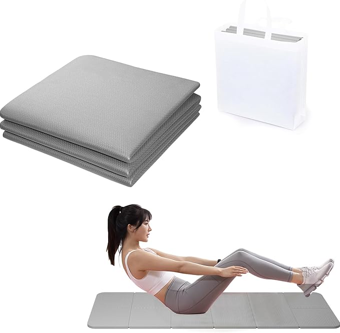 YSkrep ヨガマット 折りたたみ式 厚さ6mm 高密度TPE素材 防滑 軽量 携帯便利 収納バッグ付き トレーニングマット ストレッチ ピラティス エクササイズ バランス 筋トレ ホームトレーニング フィットネス 環境配慮 ダブルレイヤー クッション性 耐久性 滑り防止 コンパクト 自宅用 ジム用 旅行用 男女兼用 (グレー) | oioioichan
