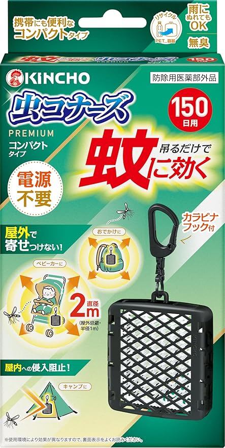 <最後まで確かな効きめ KINCHO独自の3D立体構造メッシュ>1.立体構造で表面積を拡大!ワイドに薬剤が広がる!2.メッシュの中に薬剤が練り込み。薬剤が徐々に拡散し、最後までしっかり広がる。雨でも流れ落ちにくい!晴れでもOK!3.季節を問わず蚊の出る時期に約150日間ずっと効く!吊り下げに便利なカラビナフック付き。