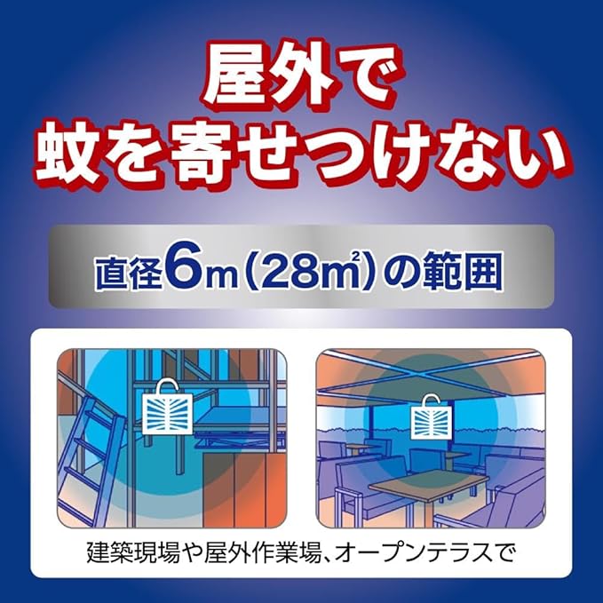 店舗や事務所等の出入口に吊るしたり、屋外に設置するだけの簡単蚊対策!直径6mまるごとバリア(屋外忌避・半径3m)火も電気も電池も不要。