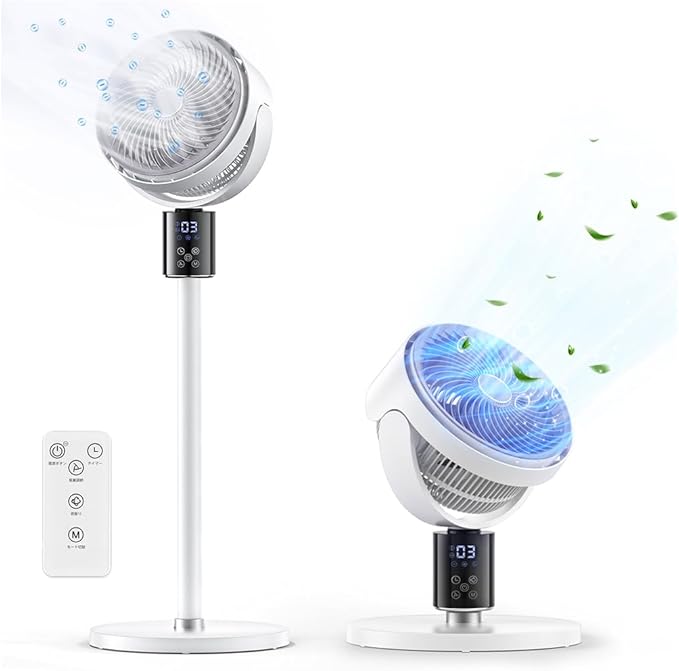 サーキュレーター DCモーター 3D 首振り 【2025年新モデル AI機能】リビング扇風機 パワフル送風 空気循環 リビング/卓上兼用扇風機 AI風量調整 360 上下左右 自動首振り 空気清浄 消臭 マイナスイオン 3モード 6段階調節 3段階高さ調整 静音設計 省エネ 12時間タイマー 節電対策リモコン付 暑さ対策冷房/除湿/換気 日本語説明書 最大30畳対応 PSE認証済 (ホワイト) | oioioichan