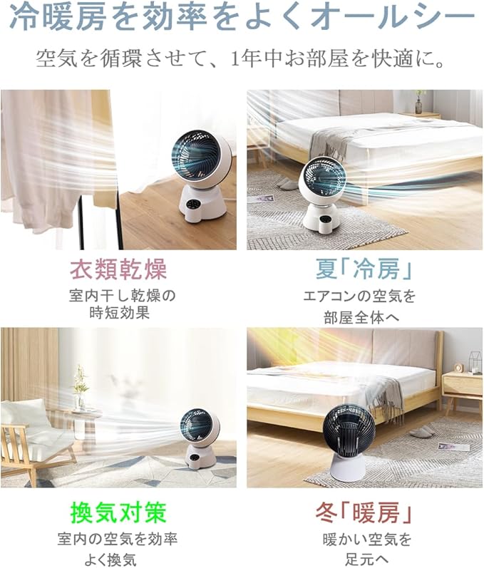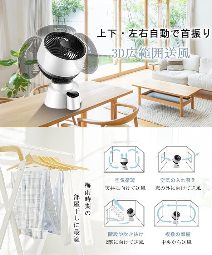 サーキュレーター 静音DCモーター 大風量 6段階調節 上下左右自動首振り リモコン付き 卓上扇風機 分解洗える 0.5-7.5hタイマー機能付き 持ち運び タッチパネル搭載 自動消灯 節電 25畳 パワフル送風機 寝室 掃除 洗濯物乾燥 部屋干し 梅雨 除湿 兼用 | oioioichan