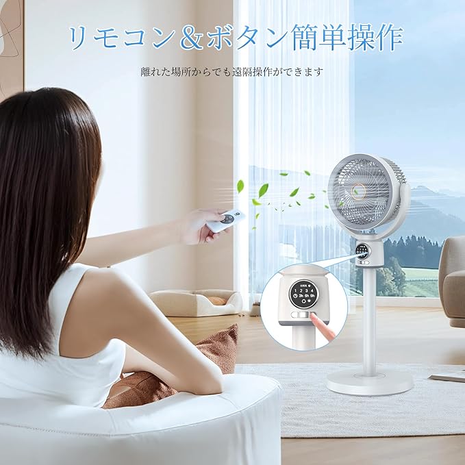 【2025最強モデル&静音&節電モデル】サーキュレーター 扇風機 DCモーター強力 左右首振り+上下手動調整 USB給電 風量5段階調節 パワフル送風 静音 リモコン付き タイマー機能 4段高さ調整可能 1台多役 換気 空気循環 部屋干し 梅雨 除湿 衣類乾燥 日本語取扱説明書付き 6-30畳 対応 | oioioichan