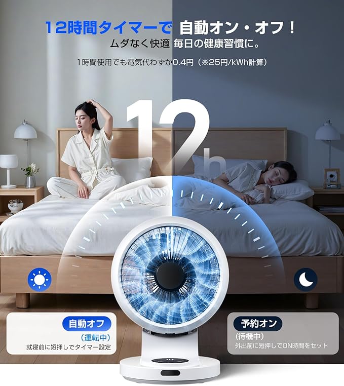 ⏰ 【超静音設計&スマート省エネ機能】図書館レベルの静けさ---わずか25dBの超静音設計で 、深夜の寝室や集中が必要なオフィスでも安心してご使用いただけます。12時間対応のタイマー機能を搭載し、就寝前の自動オフ設定はもちろん、外出時にオンタイマーを設定しておけば、帰宅と同時に涼しい空間が広がります。AIスマートチップにより、安心の自動節電機能を実現。操作がない場合、60秒で自動ディスプレイ消灯、12時間無操作で自動電源オフ。待機時の消費電力もゼロを目指しました。さらに、メモリー機能付きで、前回使用時の風量・首振りを記憶。通電の状態、再度使用する時、いつもの快適さをすぐに再現します。省エネと快適さ、両方を叶えるスマートサーキュレーターです。