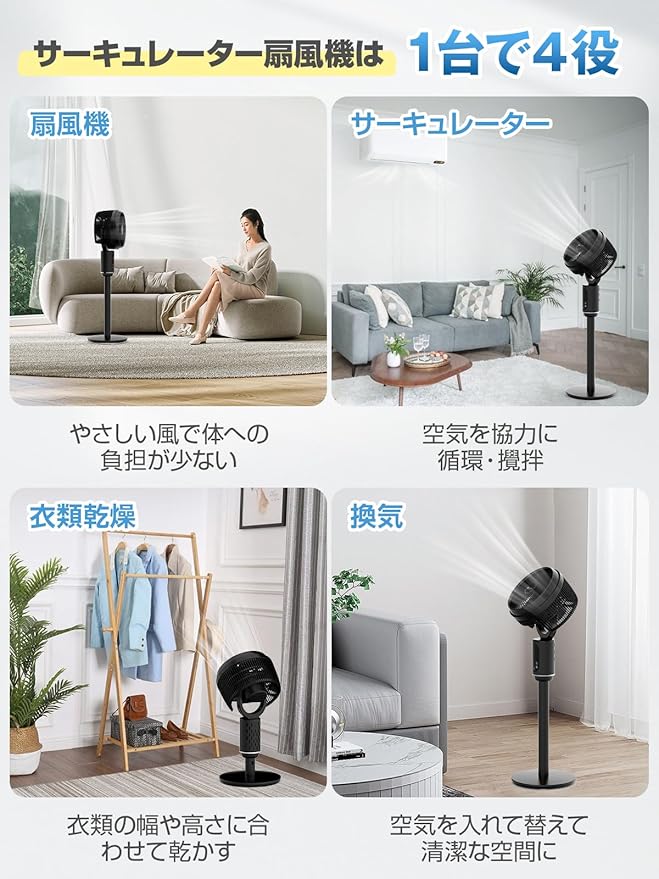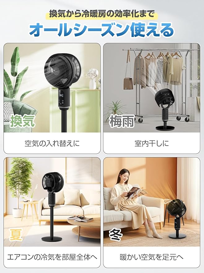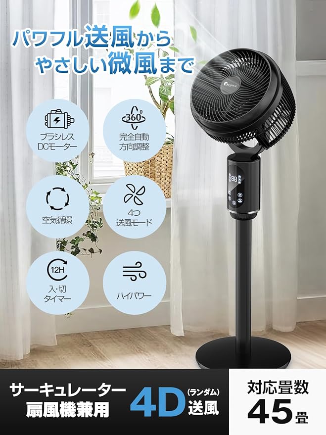 サーキュレーター dcモーター 【2025超パワフル送風・超節電・梅雨突破】 静音 扇風機 兼用 風量3段階調節 DCモーター せんぷうき 360度全自動首振り リモコン付き さーきゅれーたー 省エネ タイマー付き 高さ調整可能 パワフル送風 暑さ対策 冷暖房 換気/空気循環/部屋干し 梅雨 除湿 衣類乾燥 組み立て簡単【国内ブランド】PSE認証済 電源コード式 | oioioichan