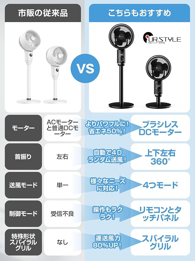 【全年用サーキュレーター&360 首振り機能】 2025年新発売のUR.STYLEサーキュレーターは、健康的な生活をサポートする多機能アイテム!夏は涼しい風を届ける扇風機として、春や梅雨時には換気や衣類乾燥、空気循環に大活躍。1台で年間を通じて便利に使える万能設計です。✅ 360 全自動首振り機能で、部屋全体に効率的に空気を循環!✅ 3Dランダム送風モードで、部屋干しや空気の流れをさらに効率化!✅ エアコンとの併用で電気代を最大50%節約!快適さと省エネを両立!UR.STYLEサーキュレーターで、快適で健康的な空間を手に入れよう!