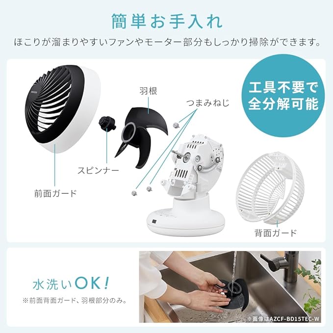 【..co.jp限定】 サーキュレーター ACモーター 18畳 上下左右 洗える 分解丸洗い 首振り リモコン付き パワフルコンパクトサーキュレーターAC AZCF-BC15TEC-W | oioioichan