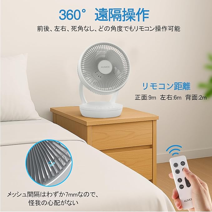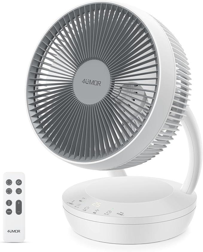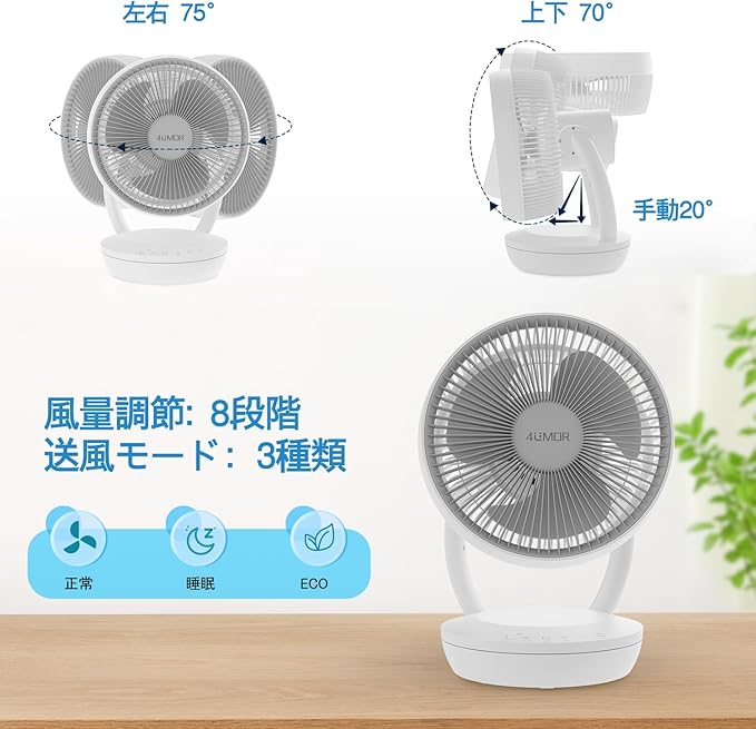 4UMOR サーキュレーター DCモーター 20畳 扇風機 静音 上下左右首振り 小型 洗える パワフル送風 風量8段階調節 3モード 8h切タイマー リモコン付き 自動消灯 空気循環 梅雨除湿 衣類乾燥 ホワイト | oioioichan