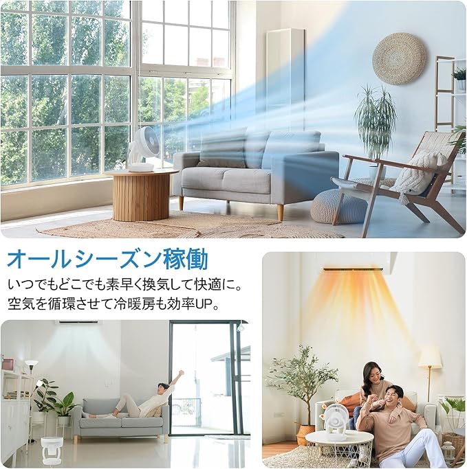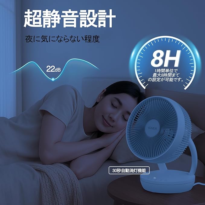 【超静音設計&タイマー機能搭載】品質の高いモーターを採用することで、動作騒音レベルと送風性能のバランスを取り、最低運転音は僅か22dBで、眠りや集中したい時でも邪魔にならなく、心地よい快適な空間を作ります。最大8時間のタイマーが設定でき、つけっぱなしを防ぎます。空気循環、部屋干しと衣類乾燥など様々な場面で活躍できます。